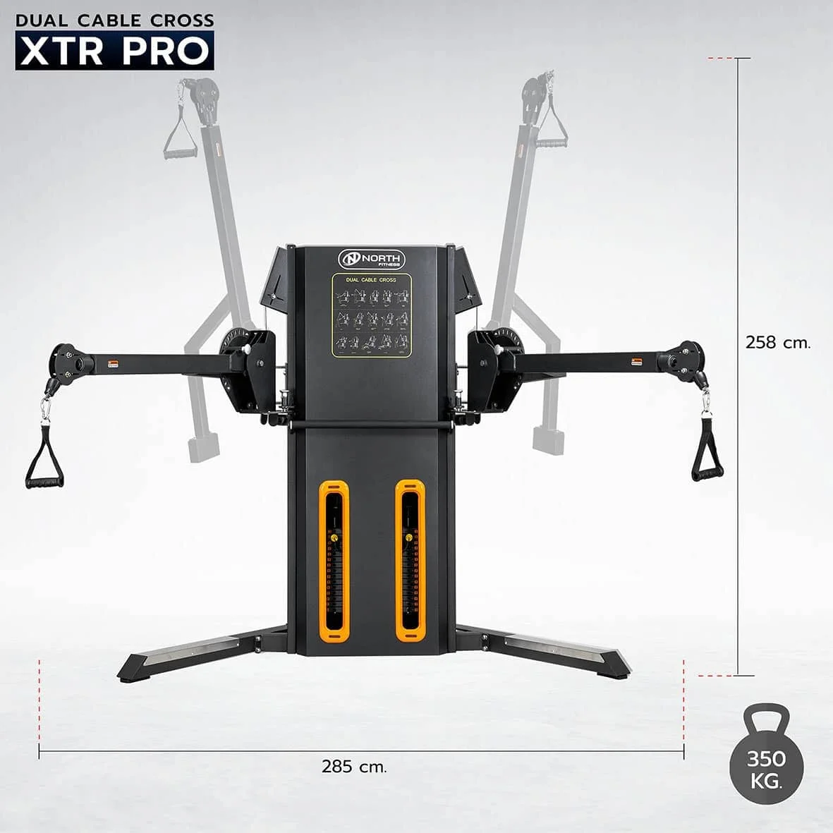 เคเบิ้ลครอส North Fitness รุ่น XTR Pro คือ เครื่องเคเบิ้ลครอสโอเวอร์ ระดับ Commercial Grade ที่มอบความเป็นอิสระและความแม่นยำสูงสุดในการฝึกซ้อมแบบ Functional Training โดดเด่นด้วยขนาดใหญ่พิเศษและโครงสร้างที่มั่นคง น้ำหนักเครื่องรวม 350 กก.ระบบการปรับระดับมีความละเอียดสูง โดย แขนเหล็กสามารถปรับสูง/ต่ำได้ถึง 12 ระดับ และ ปรับความกว้างได้ 10 ระดับ ทำให้สามารถกำหนดทิศทางแรงต้านได้เหมาะสมกับท่าฝึกกว่า 15 ท่า ครอบคลุมกล้ามเนื้อทุกส่วนมาพร้อม แผ่นน้ำหนักรวม 150 กก. (75 กก. ต่อข้าง) และ ลูกรอกระบบลูกปืนคุณภาพสูงถึง 18 ลูก เพื่อการดึงที่ลื่นไหลและต่อเนื่อง ตัวล็อกแขนเหล็กแข็งแรงได้มาตรฐานโครงสร้างทำจากเหล็กหนา พ่นสีเคลือบกันสนิมอย่างดี พร้อม โคฟเวอร์เหล็กครอบชิ้นงาน เพื่อความสวยงามและความปลอดภัยนี่คือ Functional Trainer ที่สมบูรณ์แบบ มอบทั้งความแข็งแกร่งสูงสุด ความละเอียดในการปรับระดับ และประสิทธิภาพที่เหนือกว่าสำหรับการฝึกซ้อม Free Motion ระดับยิม