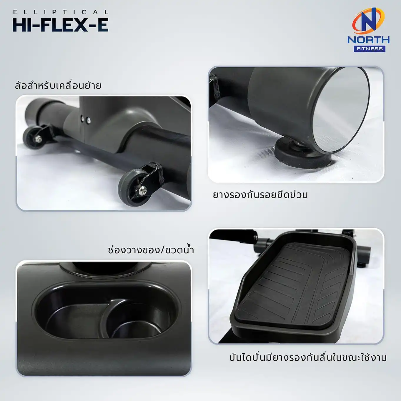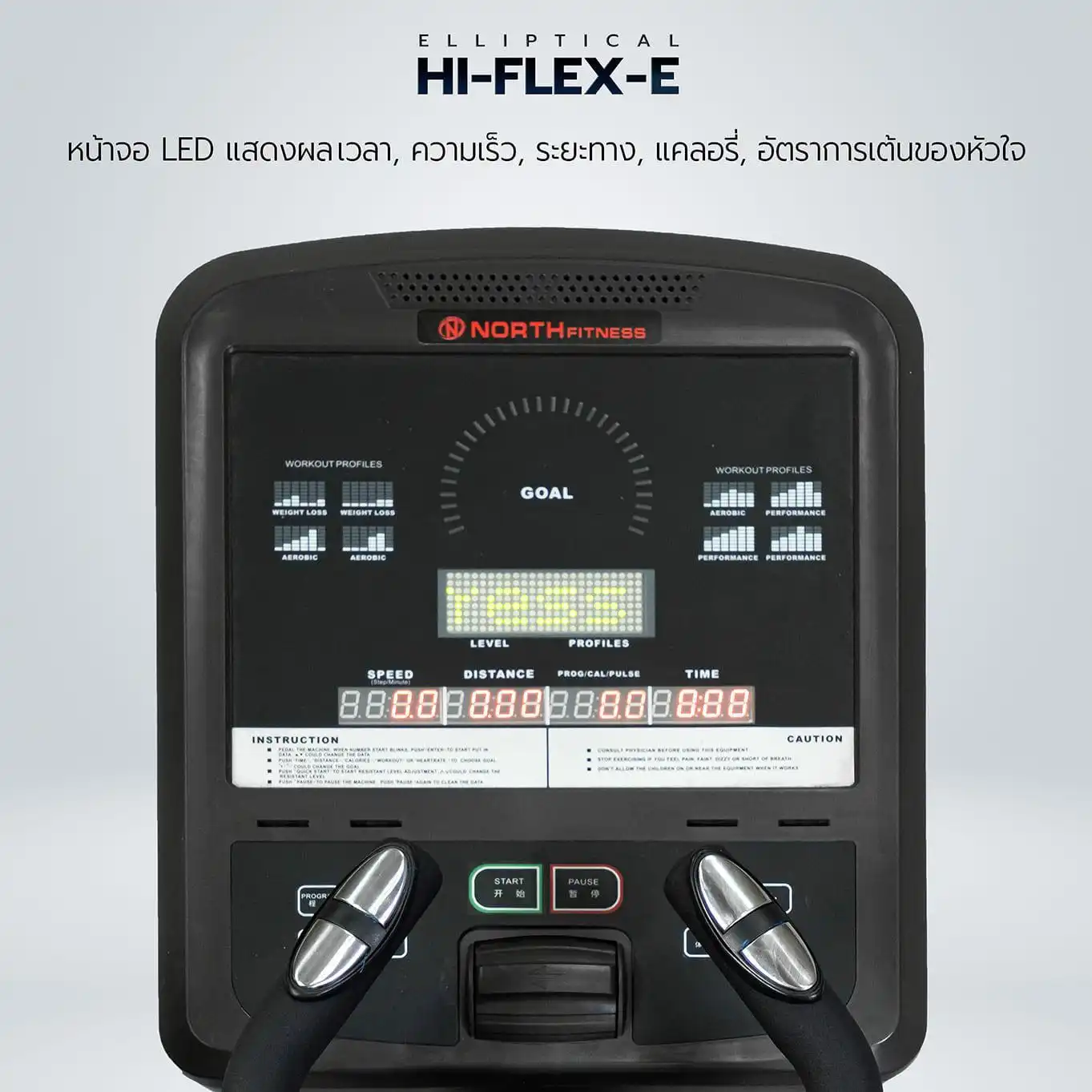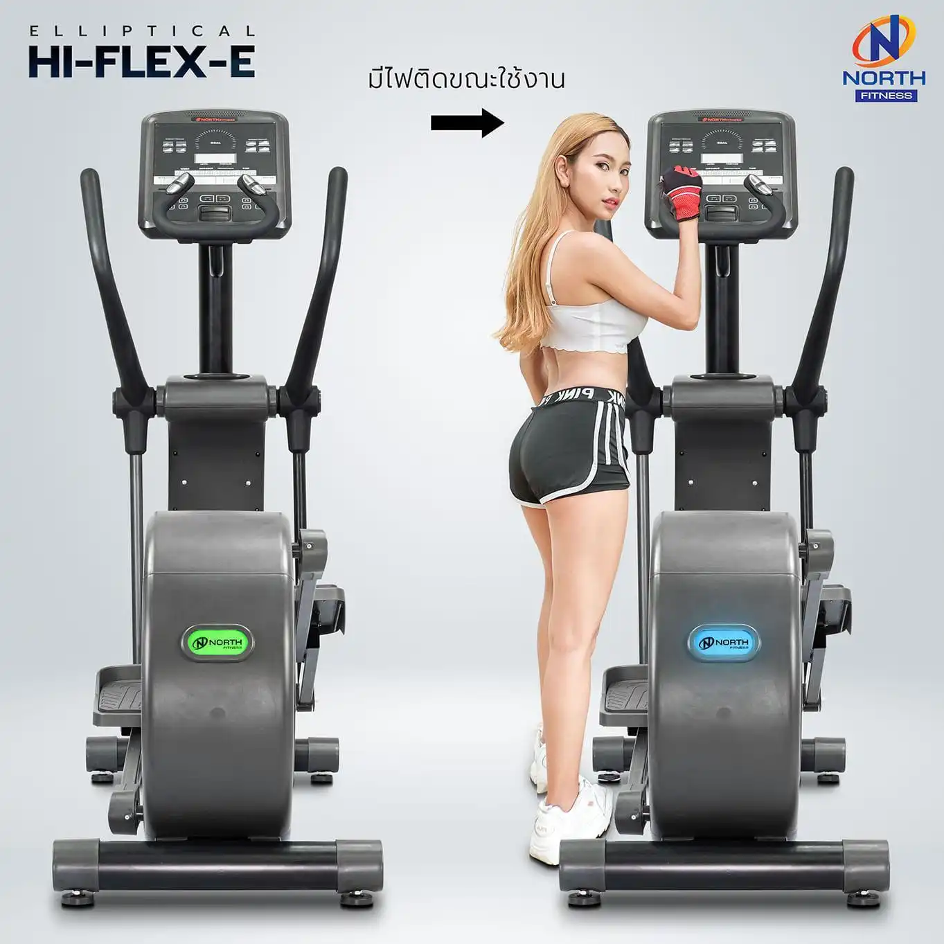 เครื่องเดินวงรี North fitness รุ่น Hi-Flex E คือ เครื่องเดินวงรี (Elliptical) ระดับ Commercial Grade ที่เป็นมิตรต่อสิ่งแวดล้อม ด้วยระบบ EMS Generator ที่สามารถ ผลิตพลังงานไฟฟ้าได้เอง ขณะใช้งาน ช่วยประหยัดพลังงานได้อย่างแท้จริงมอบประสบการณ์คาร์ดิโอที่เข้มข้นและเสถียร ด้วย Flywheel 12 กก. และปรับความหนักด้วยระบบไฟฟ้าได้ถึง 20 ระดับ โครงสร้างแข็งแกร่งทนทาน รับน้ำหนักผู้ใช้ได้สูงสุดถึง 160 กก.โดดเด่นด้วยดีไซน์หรูหรา ล้อหลังผลิตจากอะคริลิกเงา พร้อม ไฟติดขณะใช้งาน หน้าจอ LED แสดงผลครบถ้วน และมีช่องวางโทรศัพท์/iPad พร้อมล้อเลื่อนเคลื่อนย้ายสะดวกนี่คือเครื่องเดินวงรีระดับพรีเมียมที่มอบทั้งสมรรถนะระดับยิม เทคโนโลยีการประหยัดพลังงาน และดีไซน์ที่ล้ำสมัย