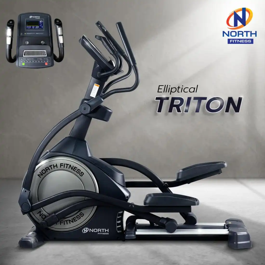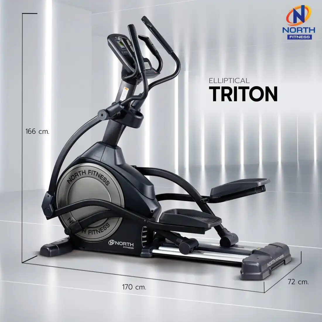 เครื่องเดินวงรี North fitness รุ่น Triton คือ เครื่องเดินวงรี (Elliptical) ระดับ Commercial Grade ที่มอบการออกกำลังกายคาร์ดิโอที่เข้มข้นและเสถียร ด้วยระบบไฟฟ้าปรับความหนักได้ละเอียดถึง 24 ระดับ พร้อม Flywheel 7 กก. ให้แรงต้านที่สม่ำเสมอโดดเด่นด้วย ระยะก้าวมาตรฐาน 20 นิ้ว และระบบรางคู่ ช่วยให้การก้าวเป็นไปอย่างมั่นคงและเป็นธรรมชาติ โครงสร้างแข็งแรงได้มาตรฐาน รับน้ำหนักผู้ใช้ได้สูงสุดถึง 150 กก.หน้าจอ LCD แสดงผลข้อมูลสำคัญครบถ้วน พร้อมโปรแกรมสำเร็จรูป P1-P12 และสามารถปรับความชันได้ 3 ระดับ (Manual) มือจับมีปุ่มควบคุมความหนัก-เบา และมีลำโพงสำหรับเล่น MP3นี่คือเครื่องเดินวงรีที่สมบูรณ์แบบทั้งด้านความมั่นคง สมรรถนะ และความทนทาน ตอบโจทย์การฝึกซ้อมที่หลากหลายได้อย่างมีประสิทธิภาพ