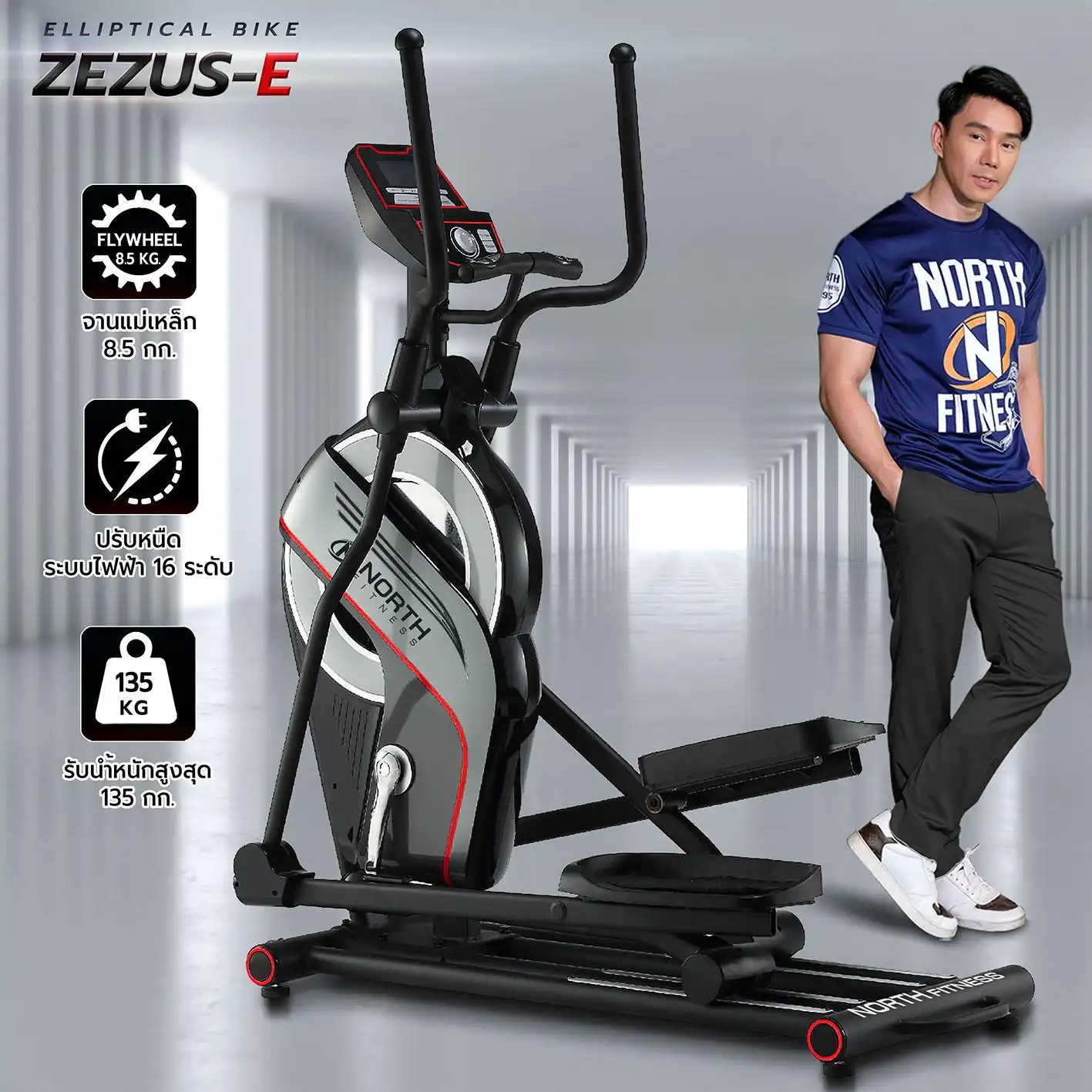 เครื่องเดินวงรี North fitness รุ่น Zezus-E คือ เครื่องเดินวงรี (Elliptical) ระบบไฟฟ้าที่มอบประสบการณ์การคาร์ดิโอที่นุ่มนวลและมีประสิทธิภาพในบ้าน ขับเคลื่อนด้วย Flywheel 8.5 กก. พร้อมปรับความหนักได้ถึง 16 ระดับ เพื่อการฝึกซ้อมที่หลากหลายโดดเด่นด้วยการออกแบบที่เน้นความเสถียร ด้วย ระบบรางคู่ ช่วยให้การก้าวไม่สะดุดและเพิ่มความแข็งแรงของเครื่อง พร้อม ระยะก้าว 17 นิ้ว ที่ลงตัว และที่พักเท้าที่รองด้วยวัสดุนุ่มสบายโครงสร้างแข็งแรงทนทาน รับน้ำหนักผู้ใช้ได้สูงสุด 135 กก. หน้าจอ LCD มีโปรแกรมสำเร็จรูป 13 โปรแกรม รวมถึงโปรแกรมวัดไขมันในร่างกาย (Body Fat)นี่คือเครื่องเดินวงรีที่มอบความเสถียรขั้นสูงและฟังก์ชันการฝึกซ้อมที่ครบครัน ตอบโจทย์การออกกำลังกายที่บ้านได้อย่างมีประสิทธิภาพ