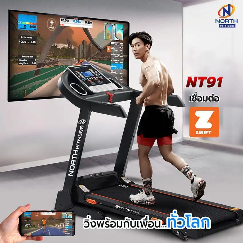 ลู่วิ่งไฟฟ้า North Fitness รุ่น NT91 คือ ลู่วิ่งไฟฟ้า ขนาดกะทัดรัดที่สมบูรณ์แบบสำหรับนักวิ่งเริ่มต้น มอเตอร์ DC 3 HP มอบความเร็วสูงสุด 18 กม./ชม. พร้อมโปรแกรมสำเร็จรูป 12 รูปแบบ ให้การออกกำลังกายที่หลากหลายโดดเด่นที่การเชื่อมต่อยุคใหม่ สามารถลิงก์กับแอปพลิเคชัน Zwift Run ได้ทันที ผ่าน Bluetooth ให้คุณวิ่งในโลกเสมือนจริงได้อย่างสนุกสนาน หน้าจอ LCD มีช่องต่อ MP3 เพื่อความเพลิดเพลินในการวิ่งโครงสร้างทำจากเหล็กหนาได้มาตรฐาน รับน้ำหนักผู้ใช้ได้สูงสุด 110 กก. มีระบบรองรับแรงกระแทกหลายชั้นช่วยป้องกันอาการบาดเจ็บ ขนาดเครื่องเล็กกะทัดรัด 70 x 158 x 128 ซม. พร้อมล้อเลื่อนเคลื่อนย้ายสะดวกนี่คือลู่วิ่งที่มอบฟังก์ชันการวิ่งขั้นพื้นฐานครบถ้วน พร้อมการเชื่อมต่อ Smart Tech ในราคาที่คุ้มค่าที่สุดสำหรับบ้านคุณ