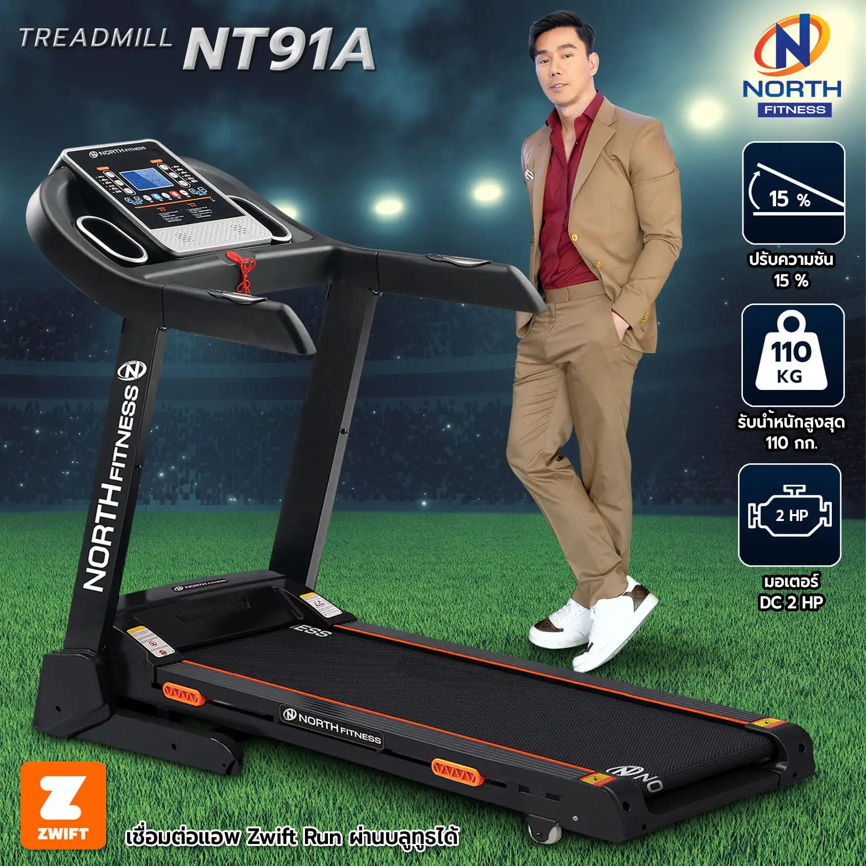 ลู่วิ่งไฟฟ้า North Fitness รุ่น NT91A คือ ลู่วิ่งไฟฟ้า ขนาดกะทัดรัดที่ถูกอัปเกรดฟังก์ชัน มอเตอร์ DC 3 HP มอบความเร็วสูงสุด 18 กม./ชม. พร้อมฟีเจอร์สำคัญคือการปรับ ความชันไฟฟ้า 15% ให้คุณเพิ่มความเข้มข้นของการออกกำลังกายได้ง่ายดายลู่วิ่งรุ่นนี้ออกแบบมาเพื่อ Home Use โดยเฉพาะ ด้วยขนาดกะทัดรัด (70 x 158 x 128 ซม.) รับน้ำหนักผู้ใช้ได้ 110 กก. พร้อมล้อเลื่อนเคลื่อนย้ายสะดวก และมีระบบรองรับแรงกระแทกหลายชั้น เพื่อความปลอดภัยของข้อต่อหน้าจอ LCD แสดงข้อมูลสำคัญครบถ้วน และสามารถเชื่อมต่อ Zwift Run ผ่าน Bluetooth เพื่อเข้าถึงโลกการวิ่งเสมือนจริง มีช่องต่อ MP3 และลำโพงในตัวสำหรับการออกกำลังกายที่สนุกขึ้นนี่คือลู่วิ่งเริ่มต้นที่มอบความคุ้มค่าสูงสุด ด้วยฟังก์ชันความชันไฟฟ้าเต็มรูปแบบ และการเชื่อมต่อ Smart Tech ที่ตอบโจทย์การออกกำลังกายที่บ้าน
