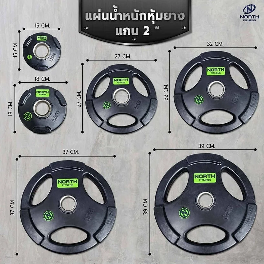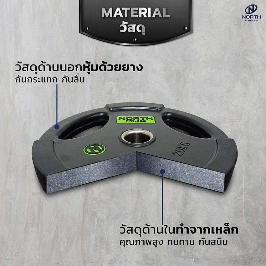 แผ่นน้ำหนัก North Fitness รุ่น Rubber ผลิตจาก เหล็กสีดำคุณภาพสูง มีความแข็งแรงทนทานเป็นพิเศษ ออกแบบมาสำหรับนักกีฬาเพาะกายและผู้ที่ต้องการบริหารกล้ามเนื้ออย่างจริงจังแผ่นน้ำหนักชุดนี้โดดเด่นด้วยการออกแบบให้มี รู/ห่วงพิเศษสำหรับจับ (Grip) ทำให้สามารถ จับเล่นด้วยมือโดยตรง เพื่อฝึกท่าเฉพาะทาง หรือใช้ยกเพื่อเพิ่มความท้าทายในการออกกำลังกายได้ง่ายและปลอดภัยยิ่งขึ้น