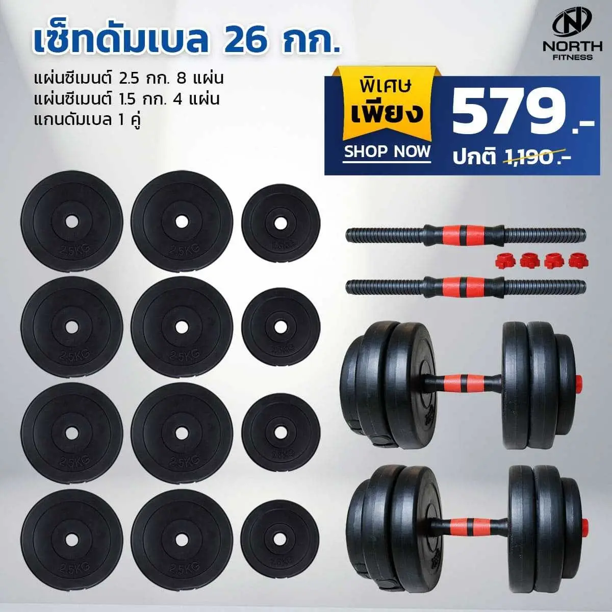 เครื่องออกกำลังกาย อุปกรณ์ฟิตเนส อุปกรณ์ออกกำลังกาย ลู่วิ่งไฟฟ้า จักรยานออกกำลังกาย ม้านั่งออกกำลังกาย ดัมเบล บาร์โหน อุปกรณ์ออกกกำลังกาย North Fitness โชว์รูมสำนักงานใหญ่ การันตีคุณภาพและราคาที่คุ้มค่าด้วยอุปกรณ์ออกกำลังกายครบครัน และมีให้เลือกตามความต้องการ มีโชว์รูมให้ทดลองสินค้า ครบจบในที่เดียวบริษัท North Fitness